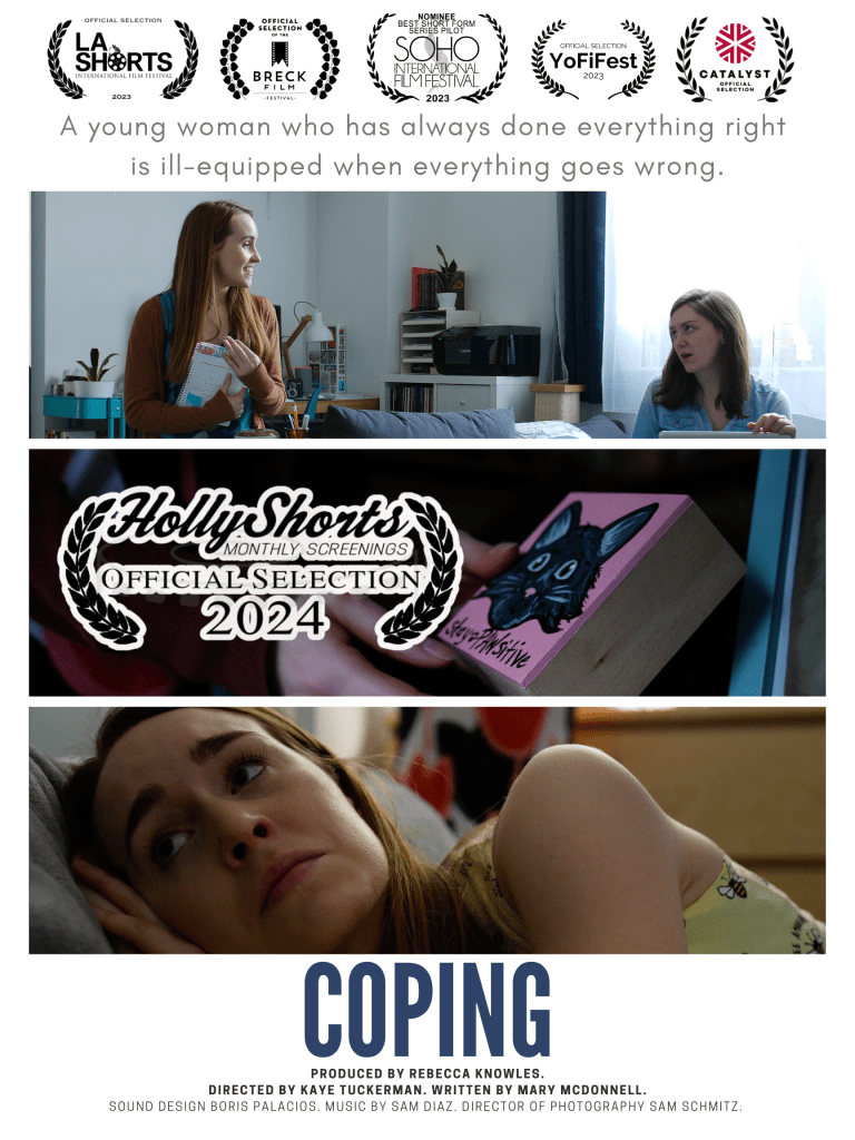 Coping – A film written by Mary McDonnell and directed by Kaye Tuckerman, Coping is a fun and relatable film that stars Rebecca Knowles as Maggie, a young woman who does everything she can to get the career she wants, working long days, putting in extra effort and making every positive impression she can to get the job she’s been dreaming of, only to find that though she’s done everything well, sometimes, it doesn’t matter. And when her dream job falls through, it sends her on a spiral that is a sight to behold. It’s a film full of humor, great acting and a concept that should feel familiar for many.
